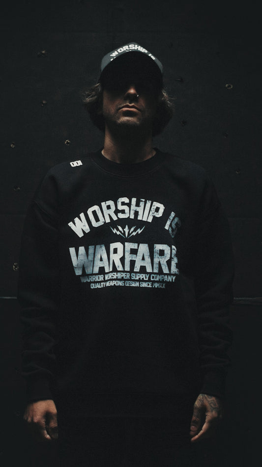 WORSHIP IS WARFARE V2 "PREMIUM" RELAX FIT CREW NECK SWEATSHIRT IN BLACK