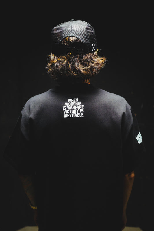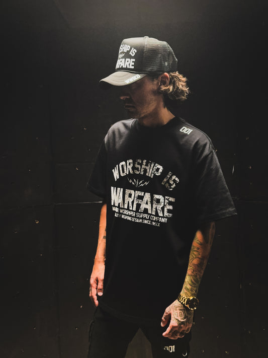 WORSHIP IS WARFARE V2 "PREMIUM" HEAVY TEE IN BLACK