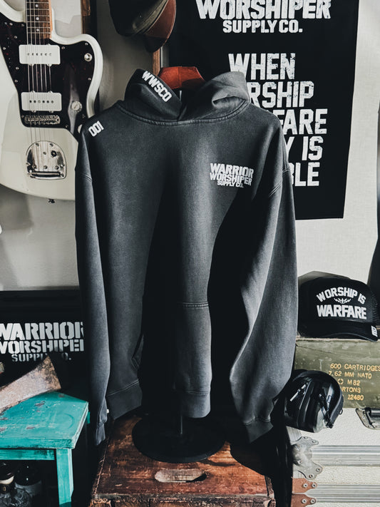 WORSHIP IS WARFARE V1 "PREMIUM" FADED BLACK HOODIE - RELAX FIT [LIMITED]