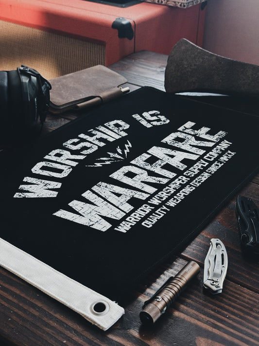Sold outWORSHIP IS WARFARE SMALL CANVAS FLAG