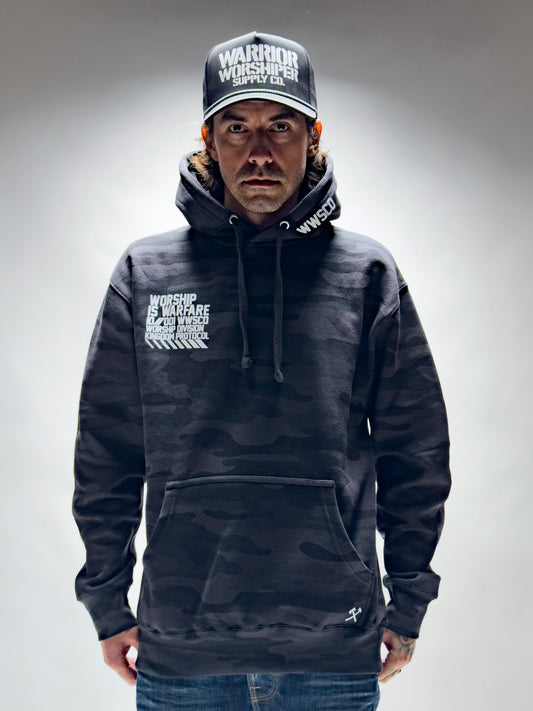 WORSHIP IS WARFARE V1 "PREMIUM" MIDNIGHT CAMO HOODIE [LIMITED]