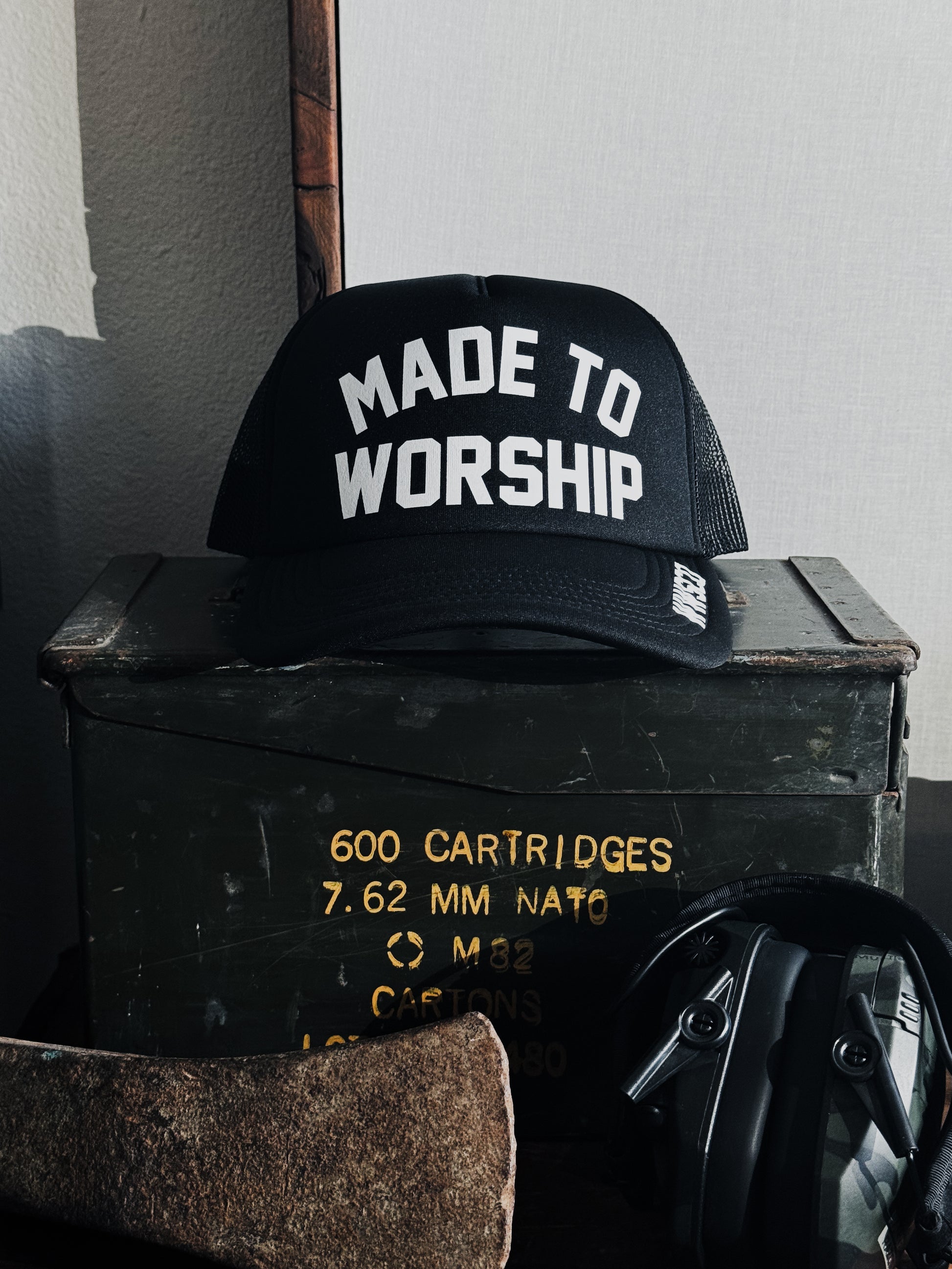 MADE TO WORSHIP FOAM TRUCKER HAT IN BLACK