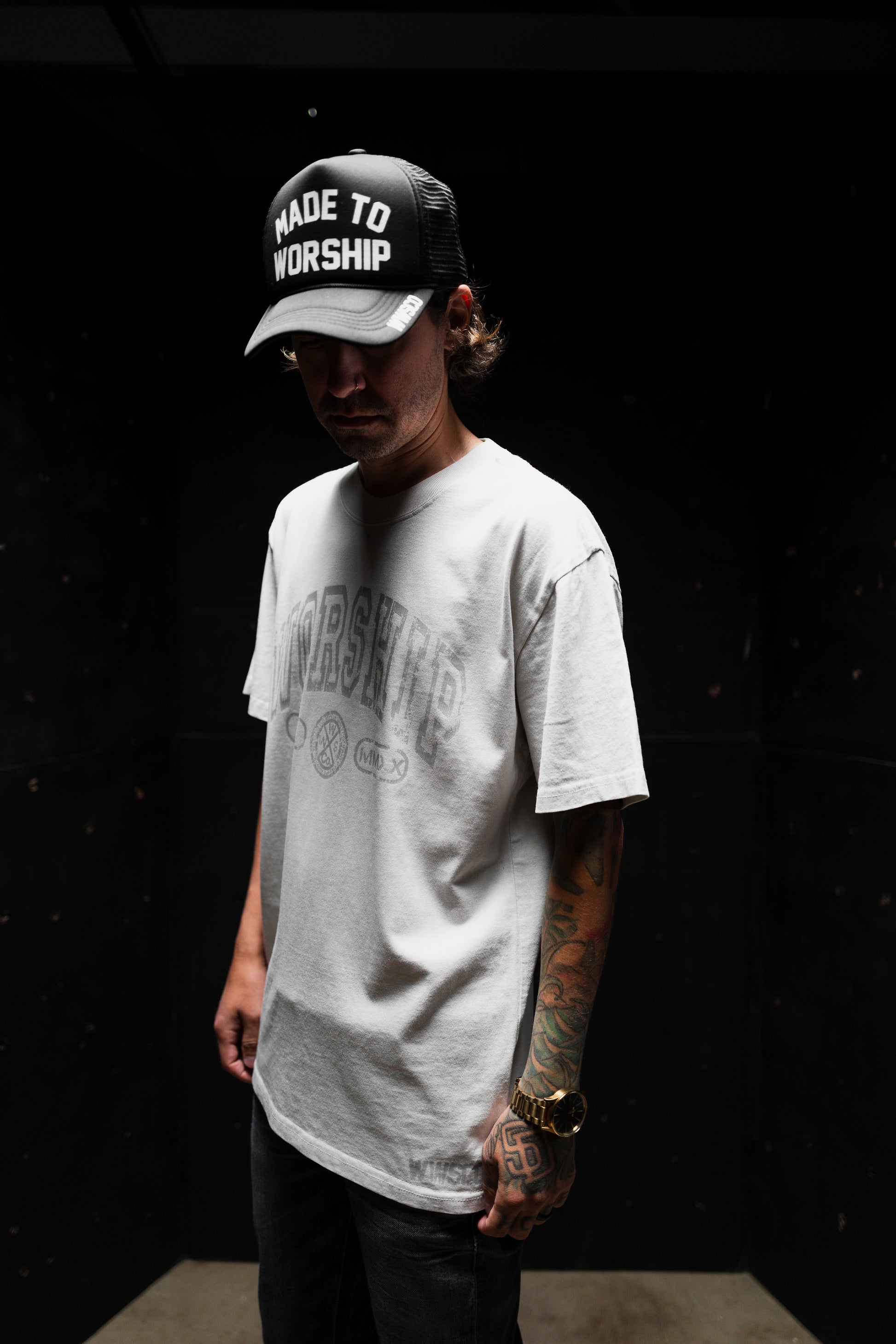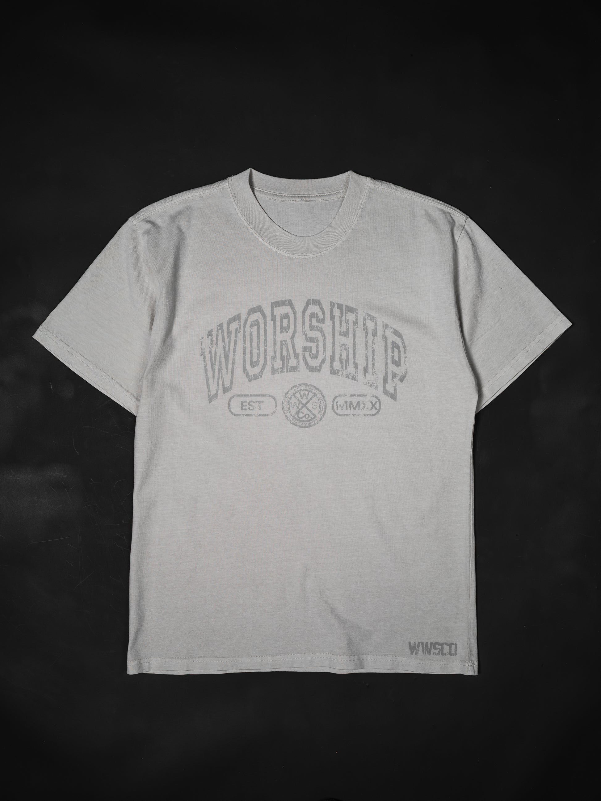 CROSSES WORSHIP "PREMIUM" HEAVY KNIT TEE IN FADED BONE 7.1 oz