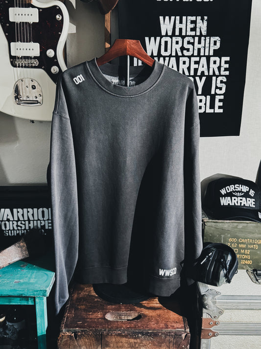 WORSHIP IS WARFARE V1 "PREMIUM" FADED BLACK CREW NECK - RELAX FIT [LIMITED]